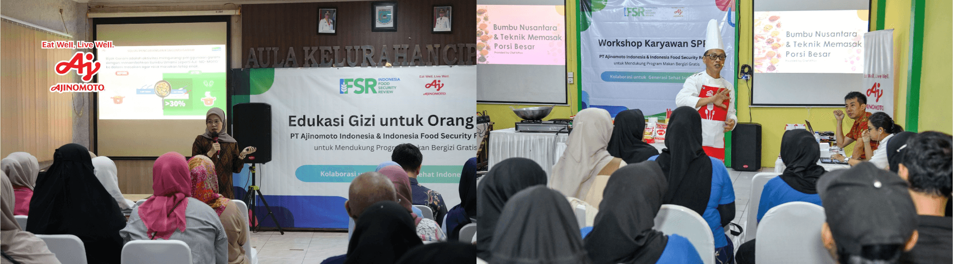 Additionally, Ajinomoto also provides support for the free nutritious meals program, in collaboration with the Indonesia Food Security Review (IFSR). This collaboration began with a series of nutrition education sessions, which are an important part of the support for the Free Nutritious Meals Program initiated by the Government of the Republic of Indonesia, involving three beneficiary groups: school students, parents, and the SPPG team. Improving balanced nutrition literacy for students and parents through direct education and training in cooking skills and understanding healthy menus for the SPPG kitchen team involved, as well as providing a nutritious menu catalog so that they are able to provide practical, delicious, varied, and nutritious food on a large scale efficiently, hygienically, and serve food that suits the needs of students at school.