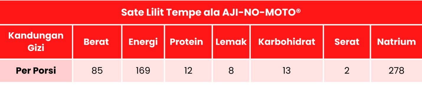 One AJI-NO-MOTO®-Style Tempeh Twisted Satay recipe can be served for 4 servings and each portion contains: