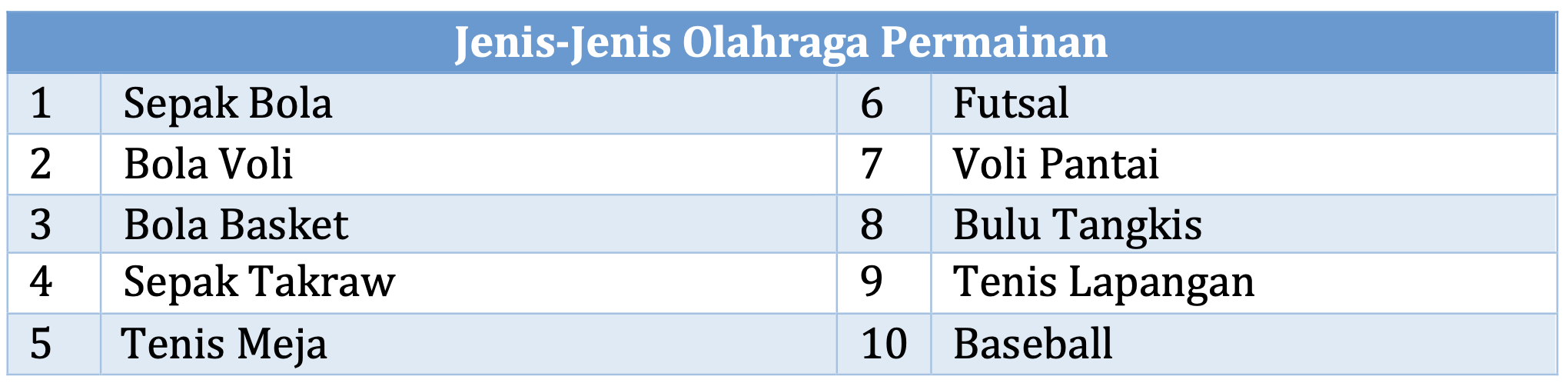 Olahraga permainan adalah olahraga yang dilakukan secara tim atau regu (lebih dari satu orang), sehingga diperlukan kerjasama yang baik antarpemain dan juga strategi yang tepat untuk memperoleh kemenangan. Olahraga permainan adalah olahraga yang membutuhkan energi dari proses aerobik-anaerobik dengan proporsi yang seimbang. Ketika olahraga dengan intensitas tinggi yang membutuhkan kekuatan secara cepat seperti berlari mengejar bola atau memukul bola dengan keras maka metabolisme energi tubuh akan berjalan secara anaerobik menggunakan cadangan energi yang disimpan di glikoden. Sedangkan saat olahraga dengan intensitas rendah seperti berjalan, metabolisme energi yang digunakan adalah aerobik dimana energi akan diperoleh dari simpanan karbohidrat, lemak, dan protein. Adapun olahraga yang termasuk ke dalam kategori olahraga permainan antara lain: