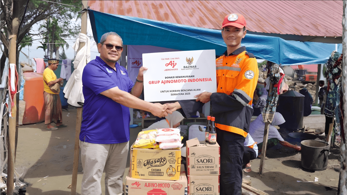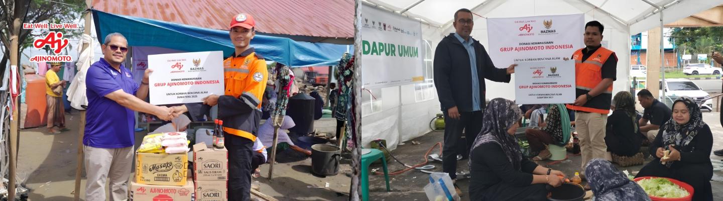 Melalui kolaborasi dengan Badan Amil Zakat Nasional (BAZNAS), Ajinomoto menyalurkan produk Masako®, SAORI®, AJI-NO-MOTO® MSG, serta donasi dana untuk pengadaan bahan pangan di dapur umum yang melayani pengungsi di Meureudu - Aceh, Koto Tengah - Padang, dan Angkola Selatan – Sumatera Utara. Dapur umum ini memastikan para pengungsi tetap mendapatkan makanan yang aman dan layak selama masa pemulihan. Bantuan diserahkan langsung oleh para Regional Sales Manager PT Ajinomoto Sales Indonesia di daerah terdampak bencana kepada tim BAZNAS Tanggap Bencana (BTB) untuk kemudian didistribusikan kepada masyarakat di lokasi terdampak.