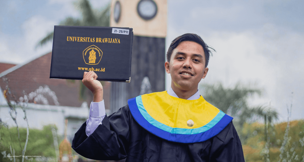 Tahun lalu, kesempatan inilah yang mengantarkan Rafiq Usdiqa Maulana, menjadi penerima Ajinomoto Scholarship tahun ajaran 2026. Rafiq merupakan pemuda asal Solok – Sumatera Barat yang merupakan lulusan Bioteknologi, Universitas Brawijaya. Beasiswa ini menjadi langkah besar dalam perjalanan Rafiq untuk mengembangkan keilmuan sekaligus memberikan kontribusi nyata bagi masyarakat.