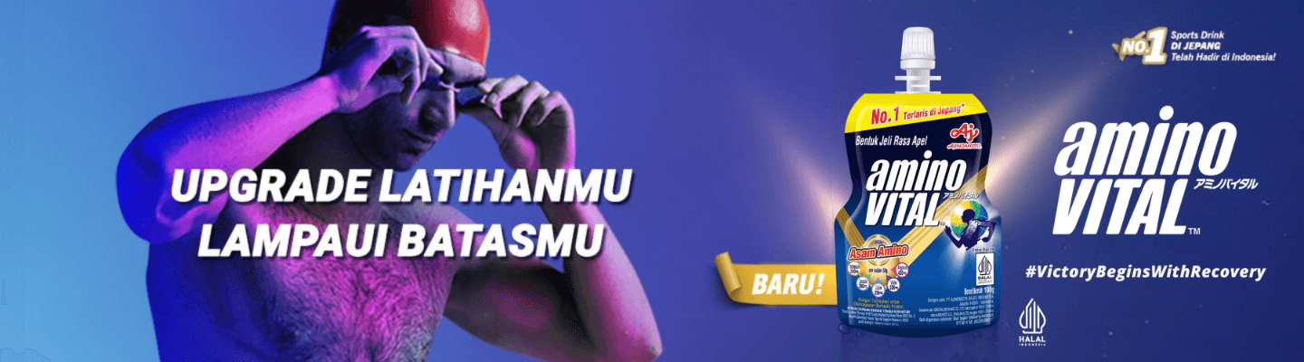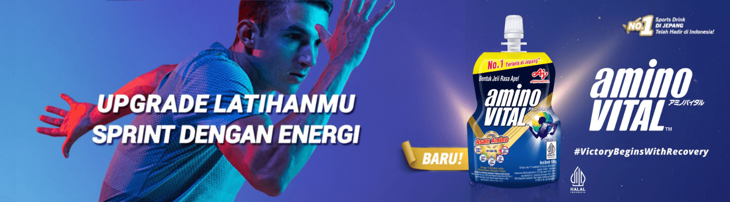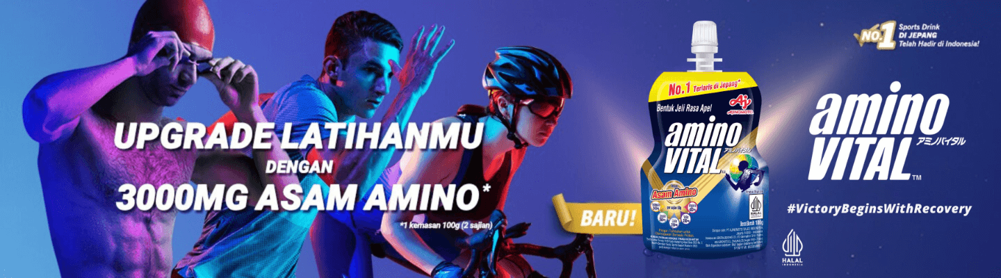 aminoVITAL™️ adalah minuman jeli asam amino rasa apel merupakan Sport Drink No.1 di Jepang. Dalam 1 kemasan 100 gr (2 sajian) dibuat dengan 3.000 mg asam amino dan 1.640 mg BCAA (Leusin, Isoleusin, Valin) dan sudah bersertifikasi halal untuk para atlet dan sport enthusiast.
