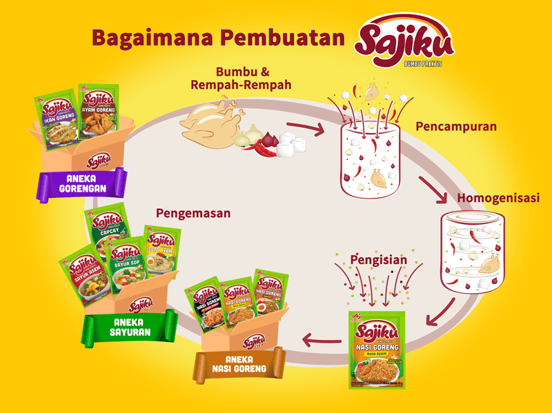 Sajiku® Bumbu Praktis Siap Pakai adalah solusi tepat untuk membuat masakan sehari-hari favorit keluarga ibu di rumah menjadi lebih enak dan praktis. Hadir dengan berbagai jenis variant yang sudah lengkap bumbunya. Sajiku® Bumbu Praktis dapat mewakili bumbu-bumbu yang biasa ibu gunakan di rumah.